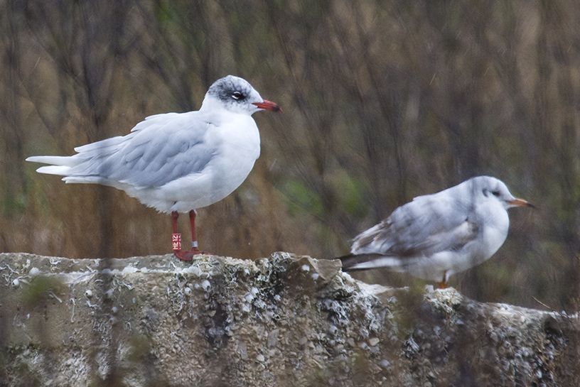 Gabbiano corallino inanellato (HE12) il 10/06/2009 in Ungheria, visto a Torre San Giovanni (Ugento) il 31/01/2015